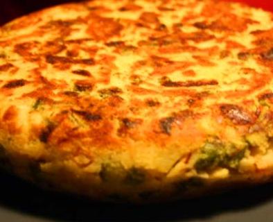 Procedimiento:Se baten los huevos con sal al gusto.En una sartén se pone la mantequilla,cuando éste caliente se le vierten los huevos revueltos con la mitad del queso y se hace una tortilla a la francesa, provocando que no se dore.Se retira de la sartén,se pone unos minutos al horno a fuego fuerte,hasta que queso empiece a dorar.